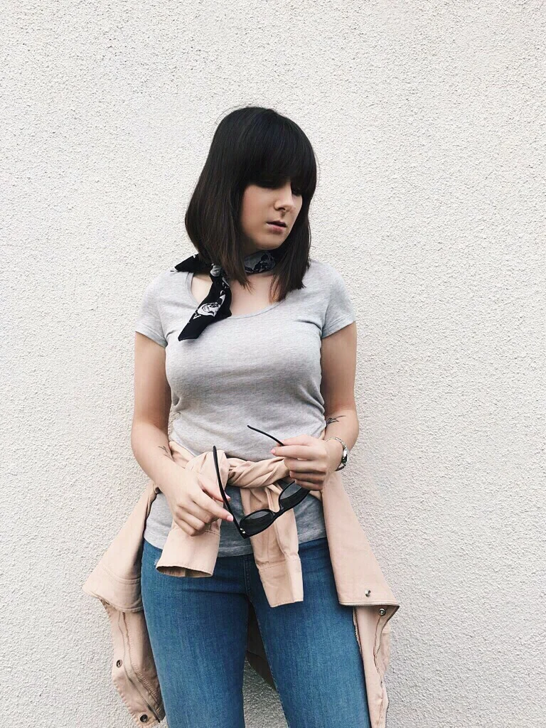 Wearing: Hugo Boss top / Topshop jacket & jeans / Saint Laurent scarf / Ray-Ban sunglasses / DKNY watch / Diesel boots